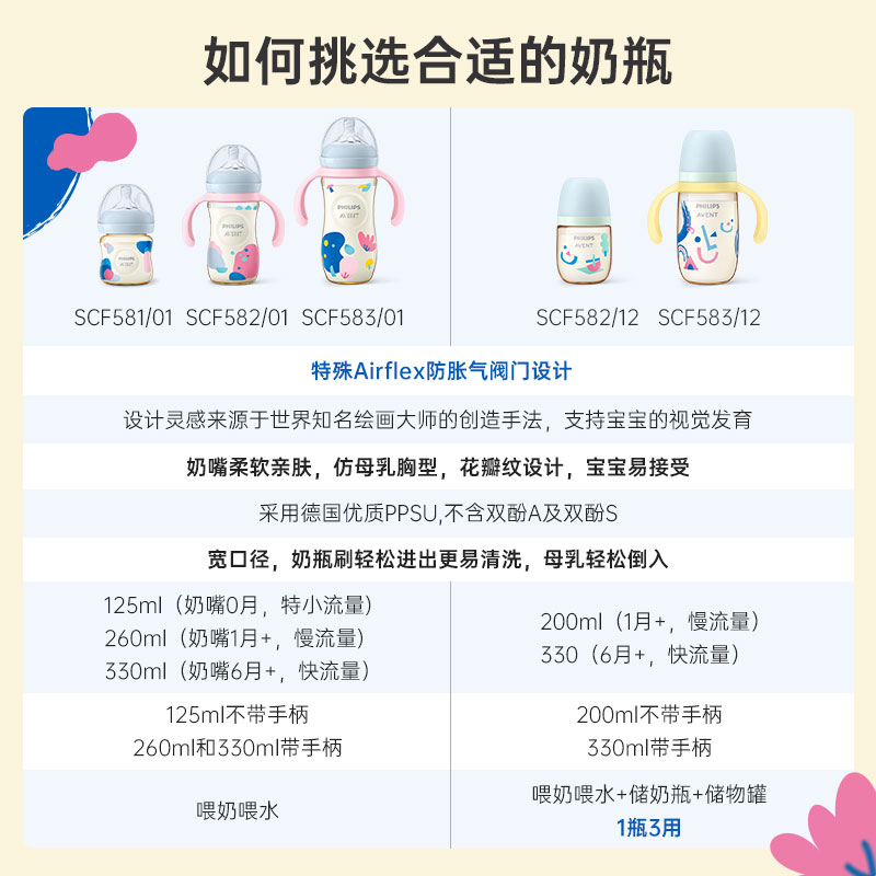 SCF581 01 artist 125ml (pacifier 0 month) SCF582 01 artist 260ml (pacifier 1 month) SCF583 01 art
