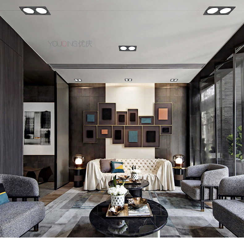 Led double head cylinder light double row double cylinder ultra-thin ceiling rectangular living room ceiling domestic aisle embedded tricolour