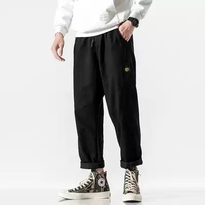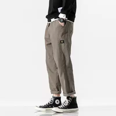 Japanese splicing car label overalls men's fashion brand pants Korean version of the trend big straight pants loose fat casual pants