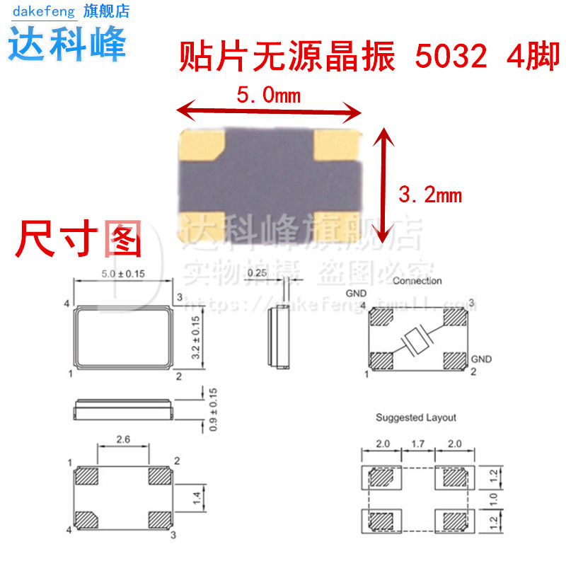 5032 SMD passive crystal 4 feet 8M 10 12 16 20 24 25 26 27 40 48 50MHZ