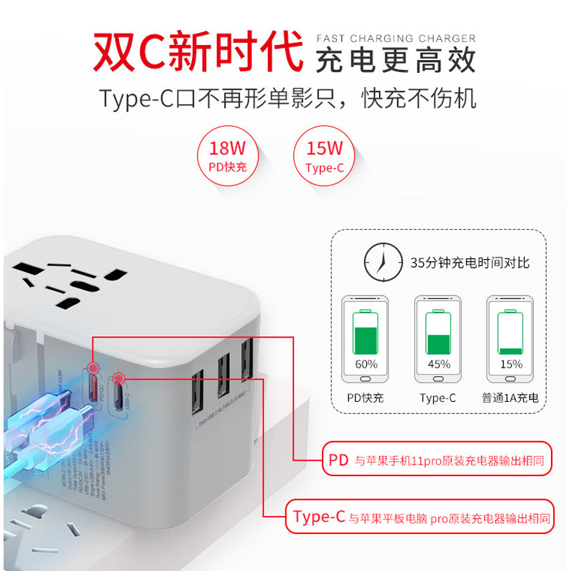 Global Versatile Universal Conversion Plug Travel Converter Multinational Socket PD Fast to South Korea Japan Dubai Egypt