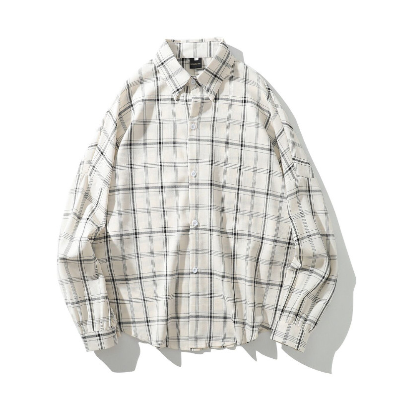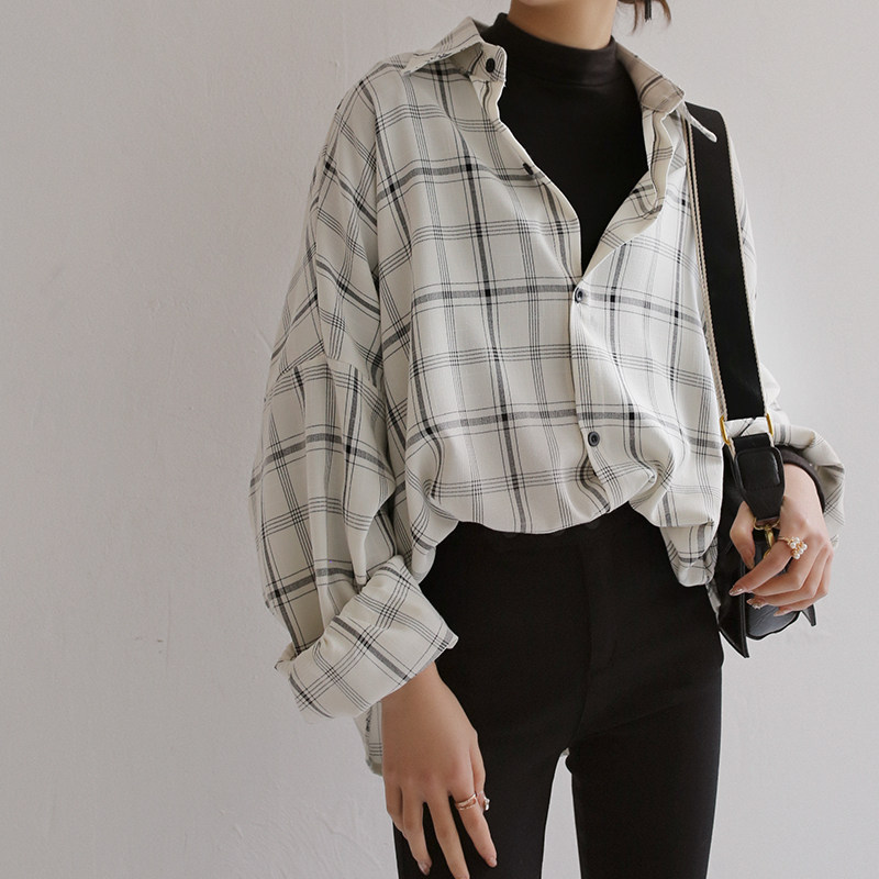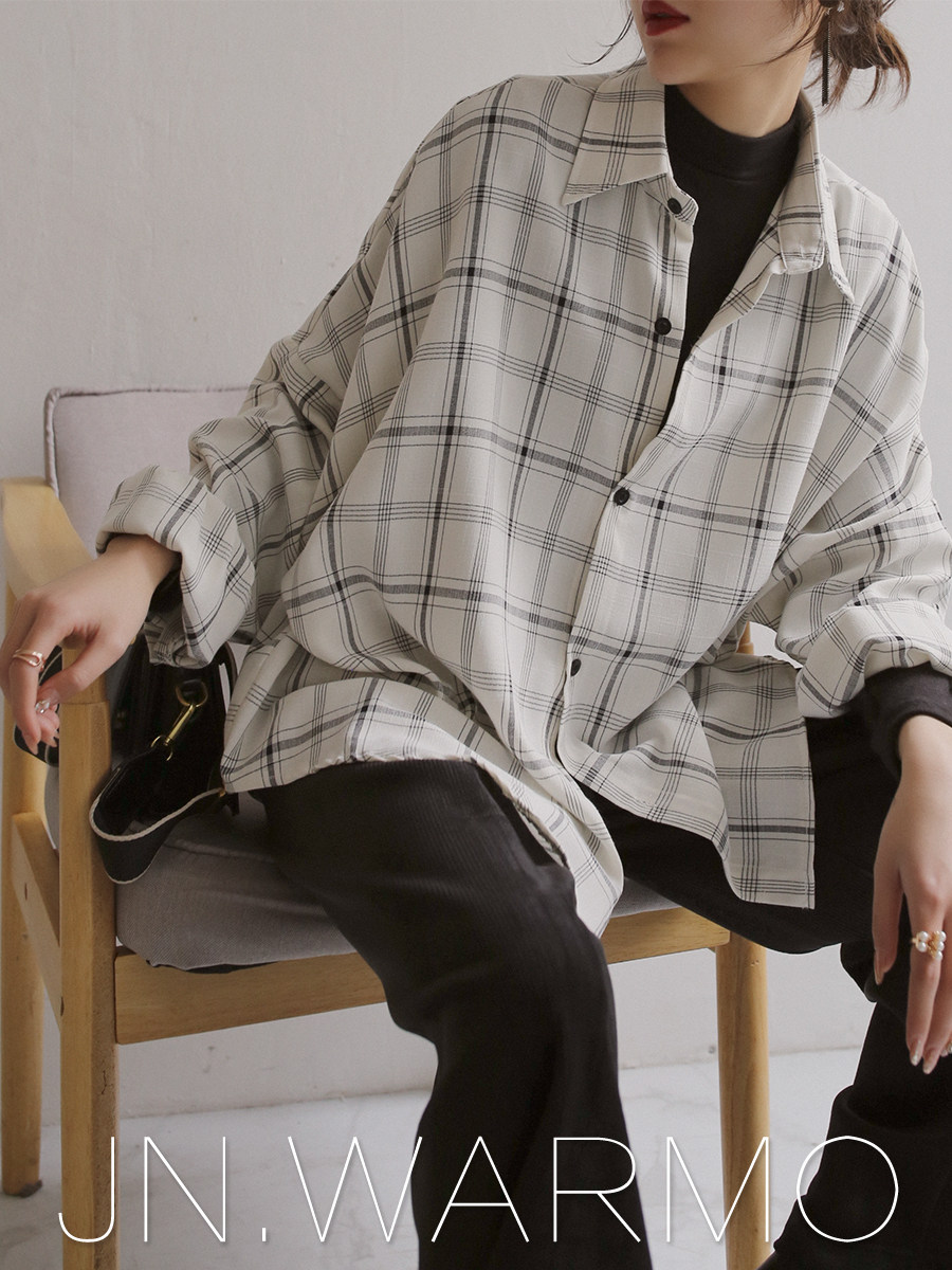 Warmo 2022 spring and autumn white plaid shirt long-sleeved casual loose slim lapel mid-length shirt women