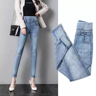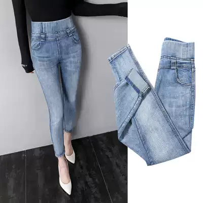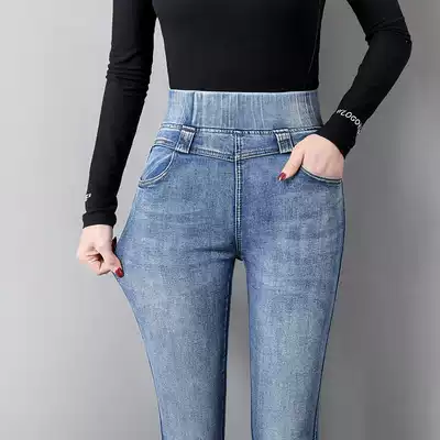 High-waisted jeans women's trousers spring and autumn summer 2021 New slim small feet elastic waist light color nine points