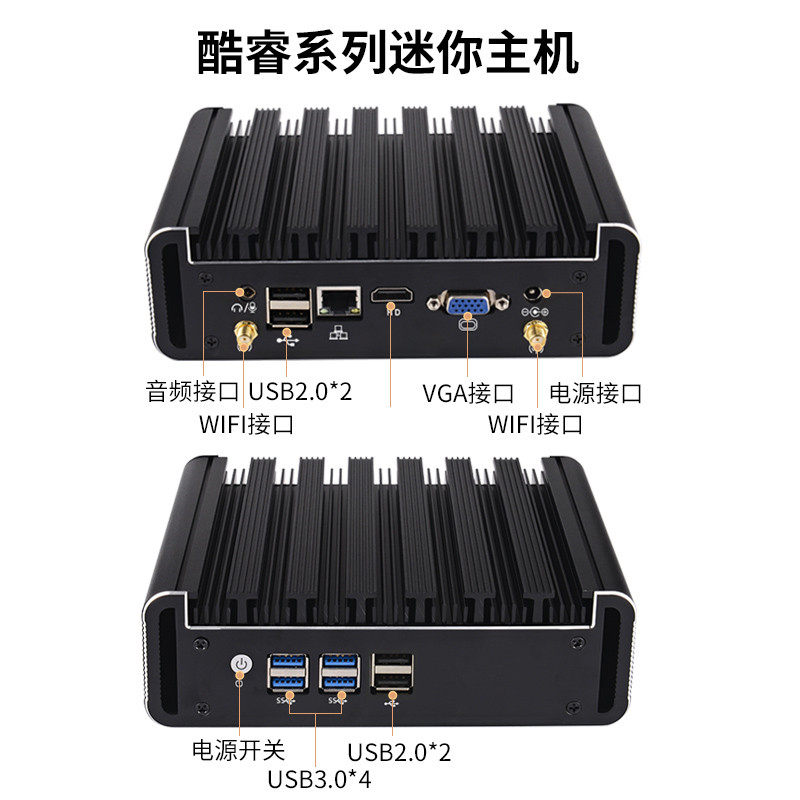 Mini computer host J1800 J1900 quad core office micro-power desktop Core i3 i5 All aluminum fan mini industrial control machine built-in wifi