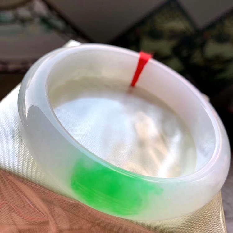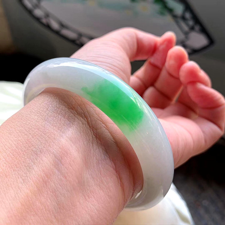 Laokeng Burmese Jade Bracelet A-type Ice Thick-bottomed Floating Green Jade Bracelet Color Yang Bottom Moisturizing Royal Concubine Bracelet
