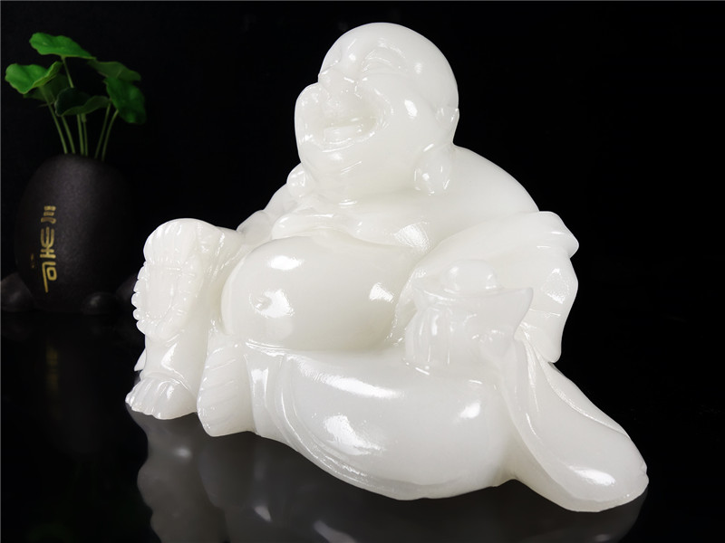 Natural jade Maitreya Buddha decoration home living room porch decoration home desktop safe big belly Buddha decorations