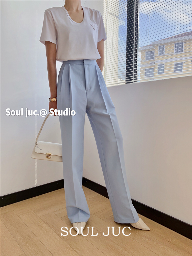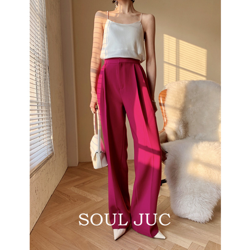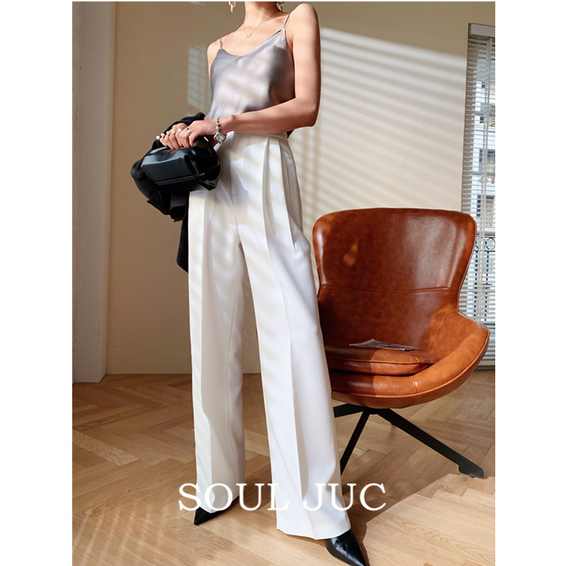 SOUL JUC Temperament 100 Hitch Classic Solid Wearing Broadlegged Pants Woman Spring Autumn High Waist Display Slim Pituitary Pants STRAIGHT BARREL PANTS