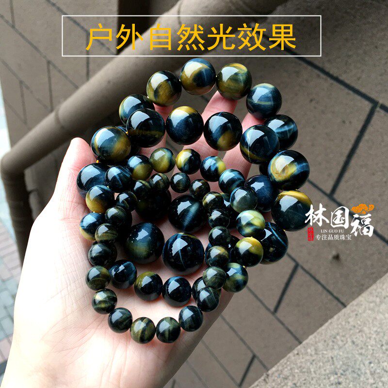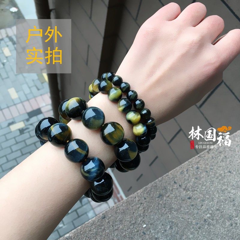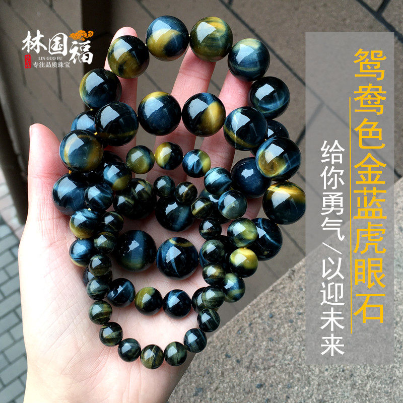 "Double pupil" natural mandarin color golden blue tiger eye stone hand-made gold and blue eagle eye stone bracelet for men's ladies