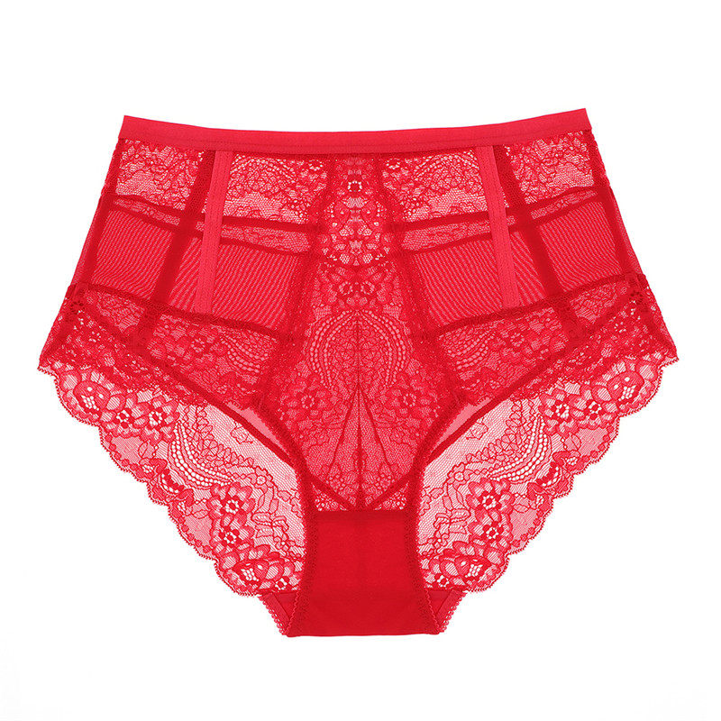 Zodiac year red underwear briefs thong T pants mid-waist high waist ultra-thin lace sexy temptation big red