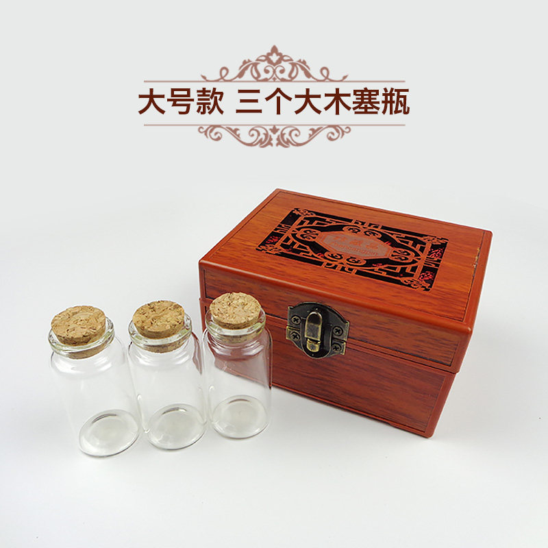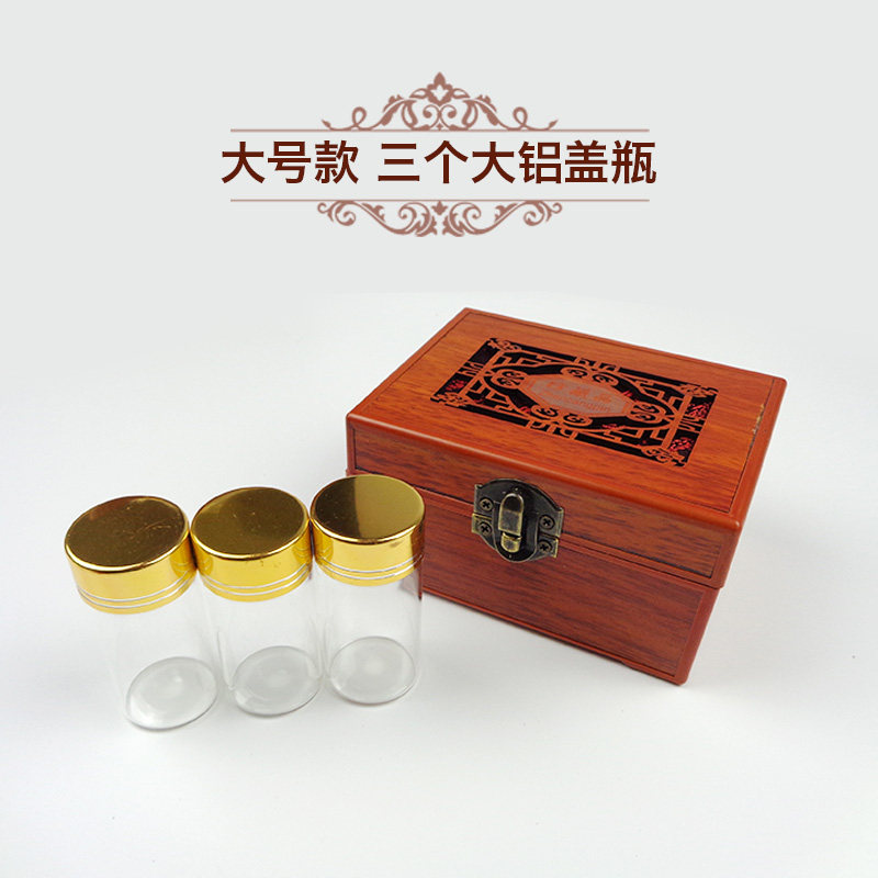 Small wooden box 2 large wooden stopper bottles Small Wooden box 2 large aluminum cap bottles Large wooden box 3 large wooden stopper bottles Large wooden box 3 large aluminum cap bottles