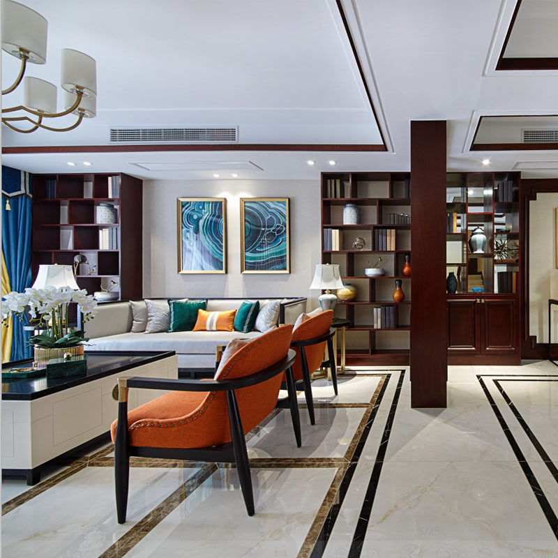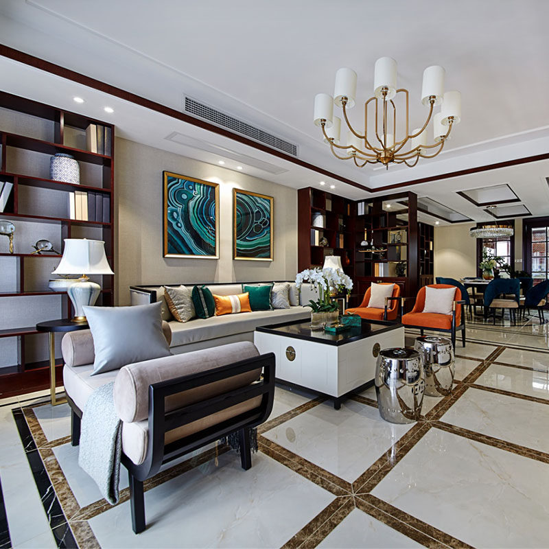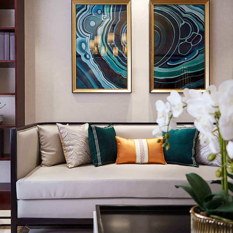 New Chinese style sofa combined modern Chinese solid wood cloth art small family style living room light extravagant meditation full house furniture custom-made
