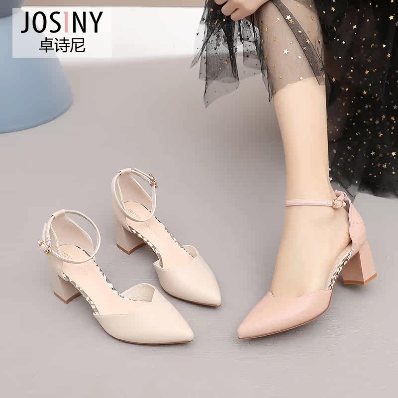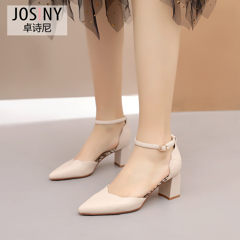 Zhuosini 2022 autumn new bag shoes women's thick heel one-word buckle pointed hollow high-heeled Korean version thin high-heeled shoes