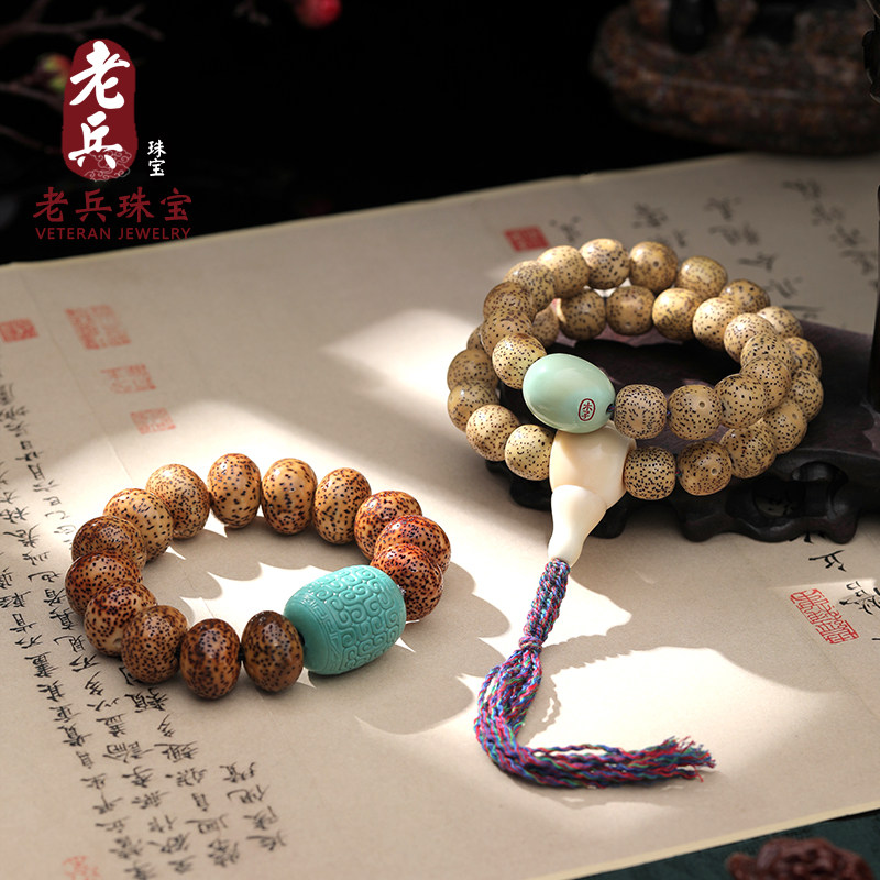 Veteran Star Moon King Kong Bodhi Hand String Male and Female Old Chen Zi White Jade Emperor Master Bead String Necklace Original Seed Live Shot 24