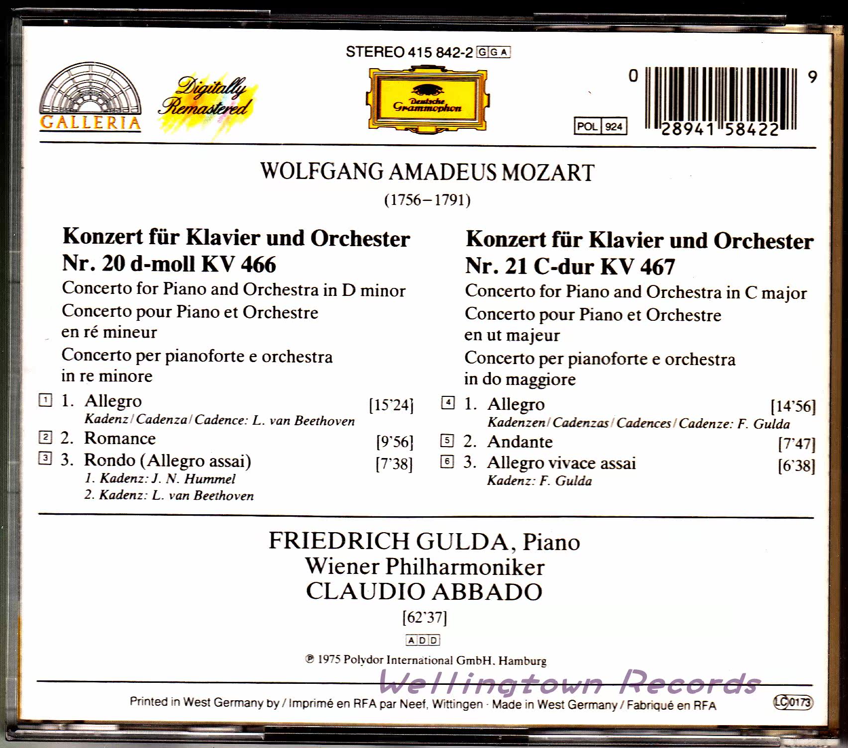 Abbado Vienna Philharmonic Gulda Mozart Piano Concerto No. 21