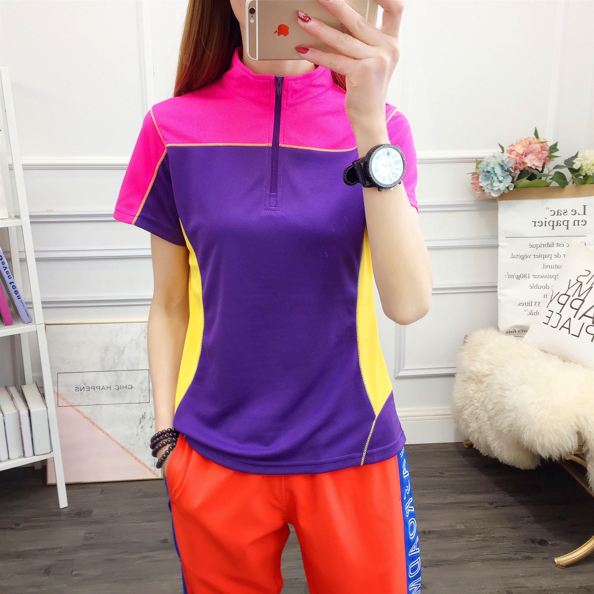 Outdoor Short Sleeve T-shirt Women Casual Sports Parquet Speed Dry Jersey Running Foot Fast Dry Big Size Breathable Perspiration Collar