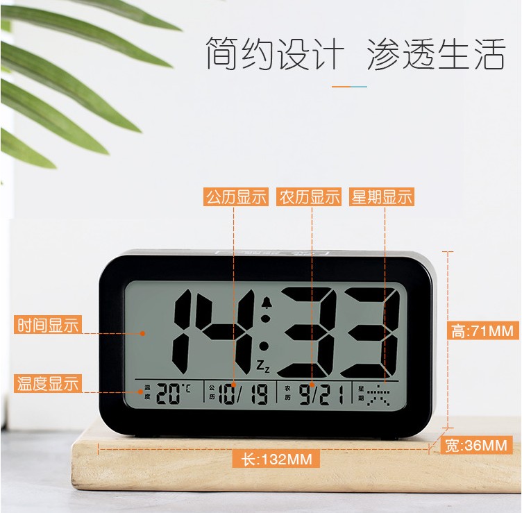 Lithium battery charges large screen clock voice alarm clock can use their own recording reminder alarm clock