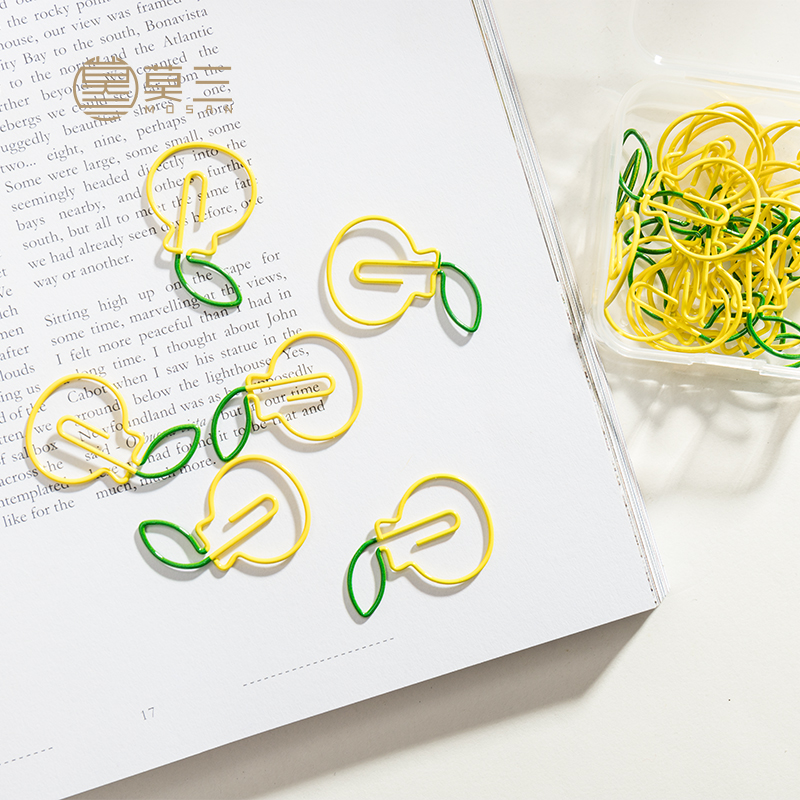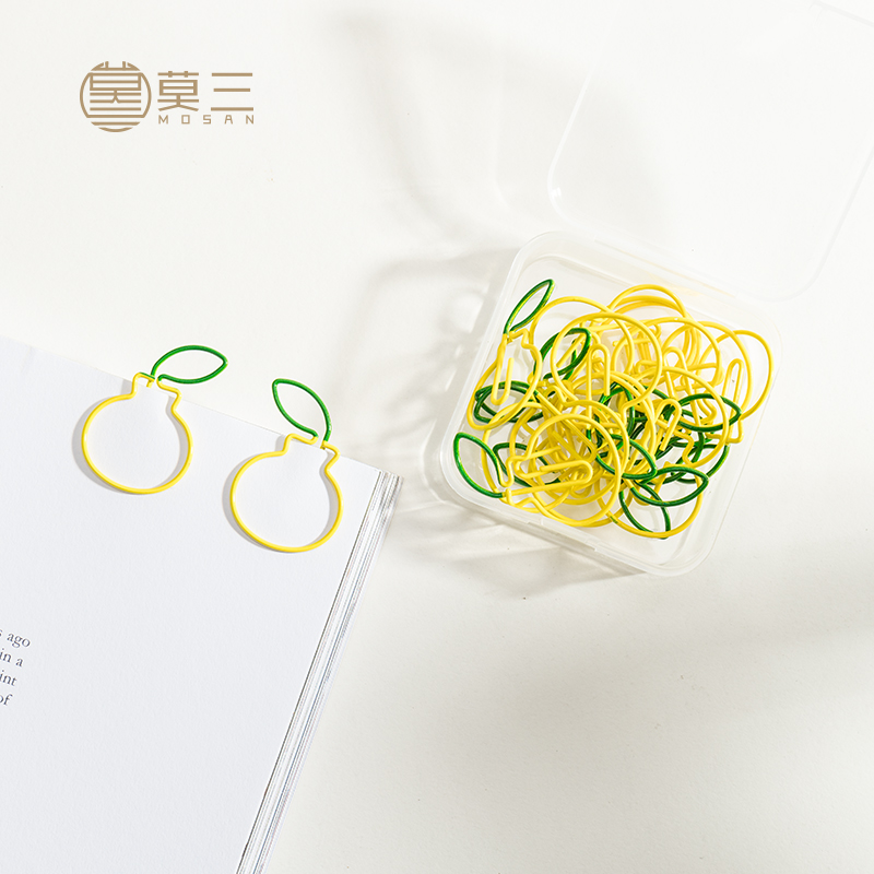 Mo San Stationery Orange color paper clip boxed bookmarks creative cute paper clips office documents small fresh roundabout needle hand account fixed geometric shape multifunctional metal pins 24 pieces