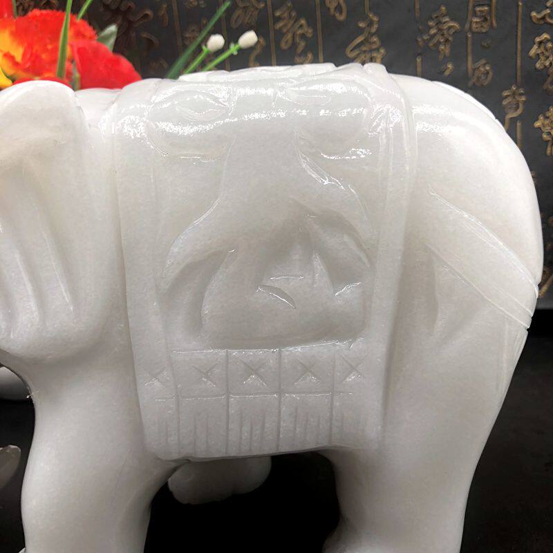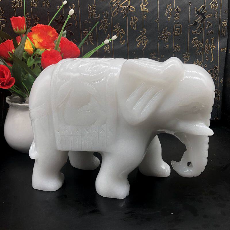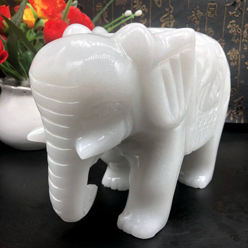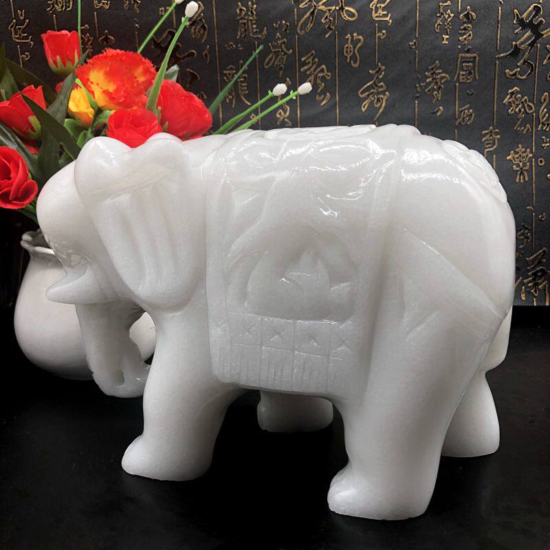 Natural White Jade Elephant Pendulum with Feng Shui Sucking water suction Treasure House Living Room Office Furnishing Thai Wind Pair
