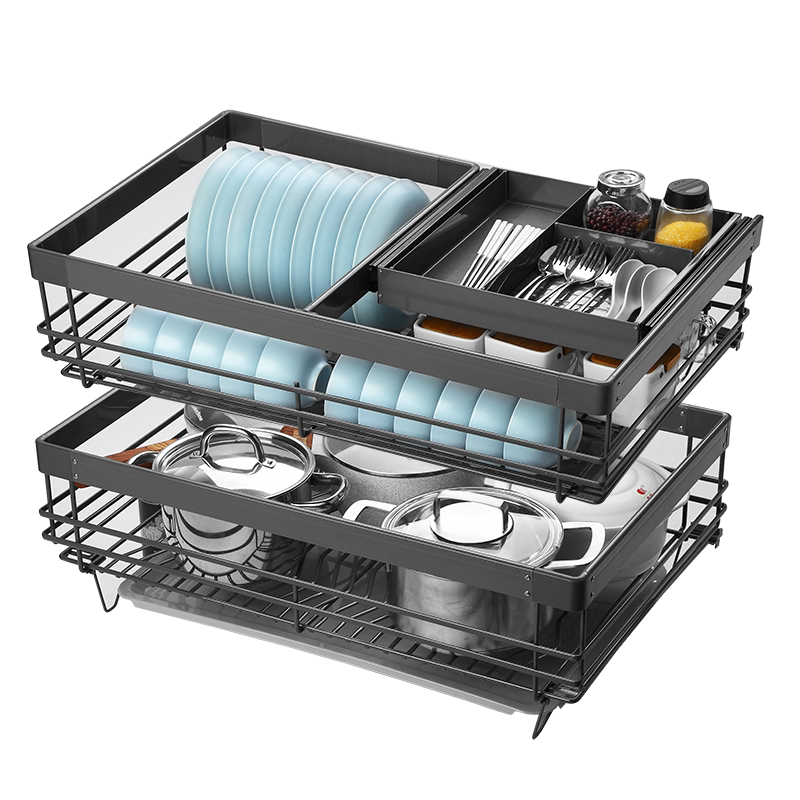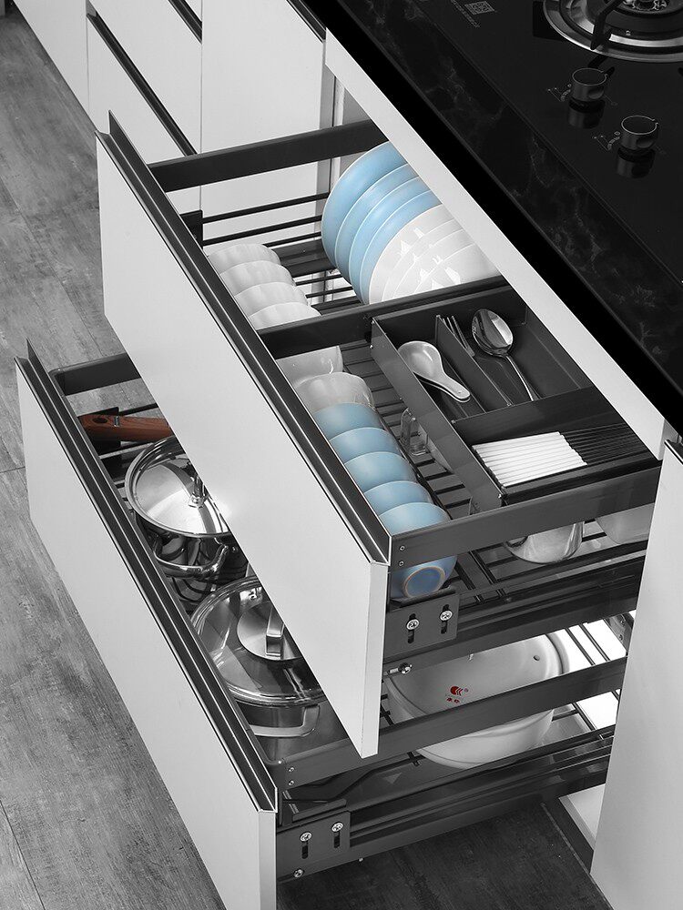 Pull basket kitchen cabinet 304 stainless steel double - deck drawer damper bowl frame contains flavor kitchen cabinet inside bowl basket