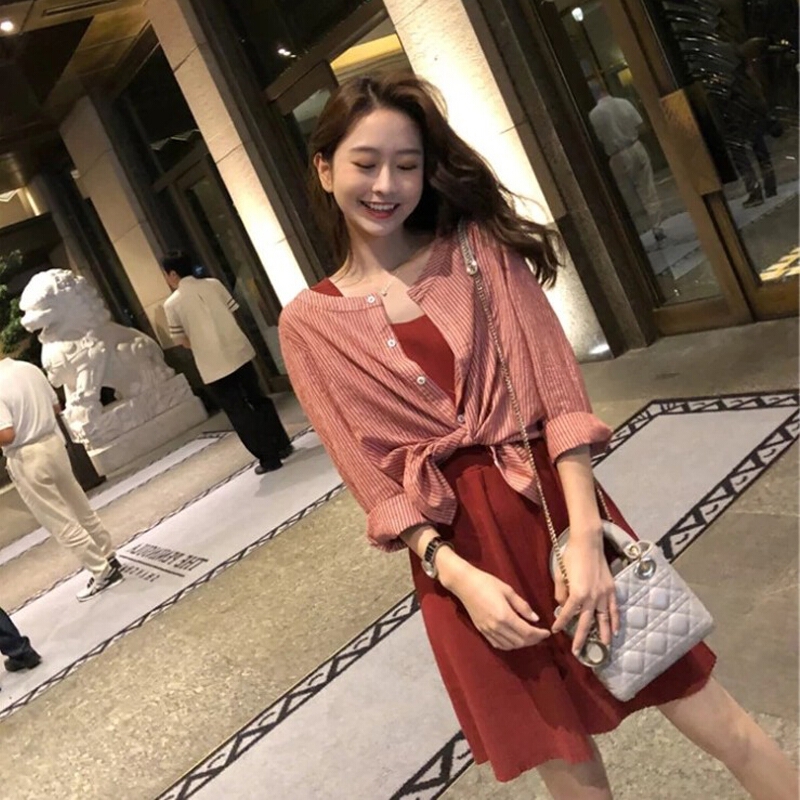 European station 2022 summer two-piece temperament goddess Fan French niche skirt seaside holiday super fairy dress