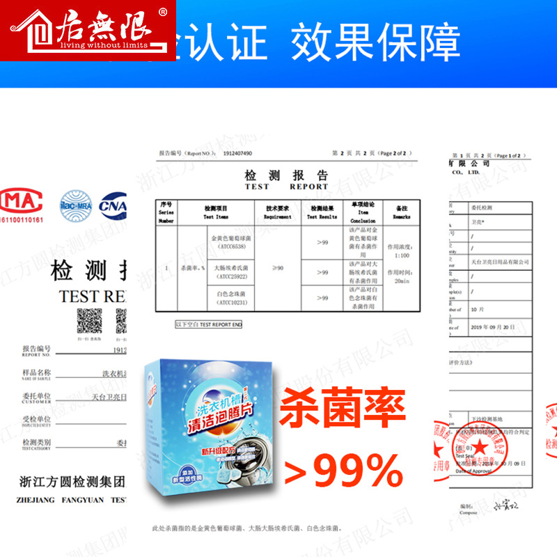 Washing machine cleaning agent Sterilization disinfection Descaling Household washing machine trough Drum cleaning Cleaning stains Effervescent tablets