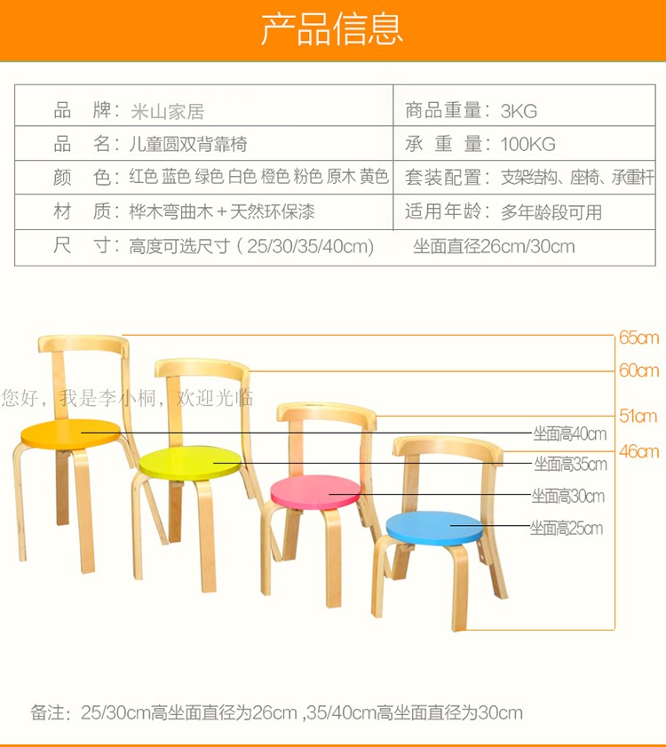 Color solid wood kindergarten seat children's chair backrest chair painting gallery art tutoring training institution chair