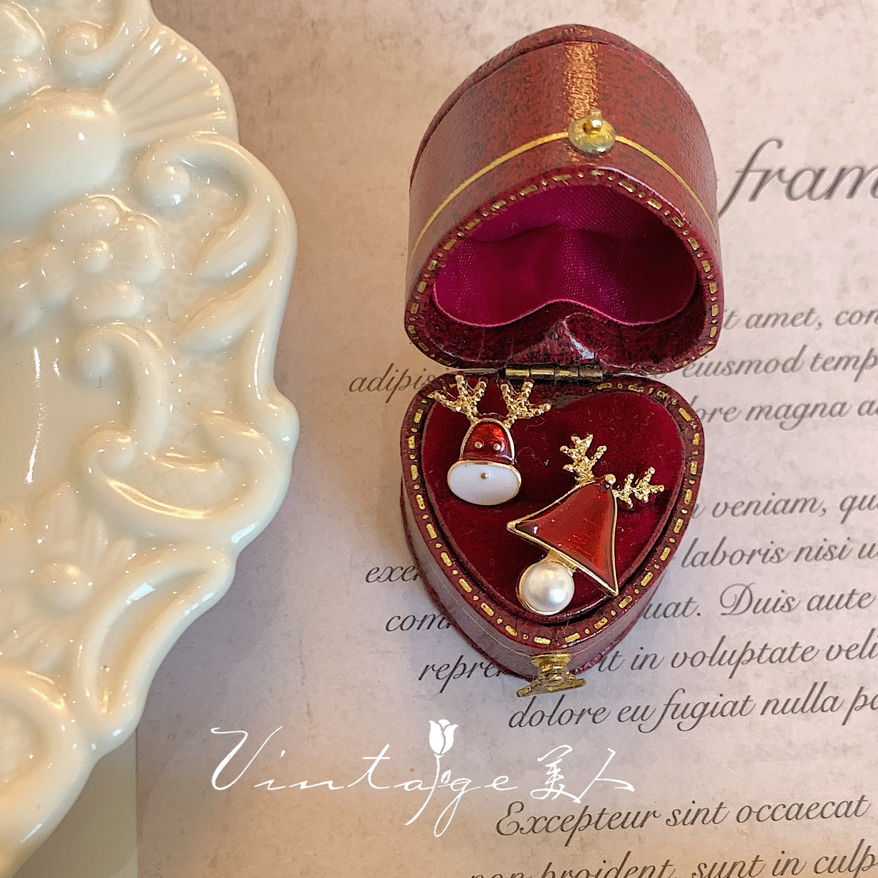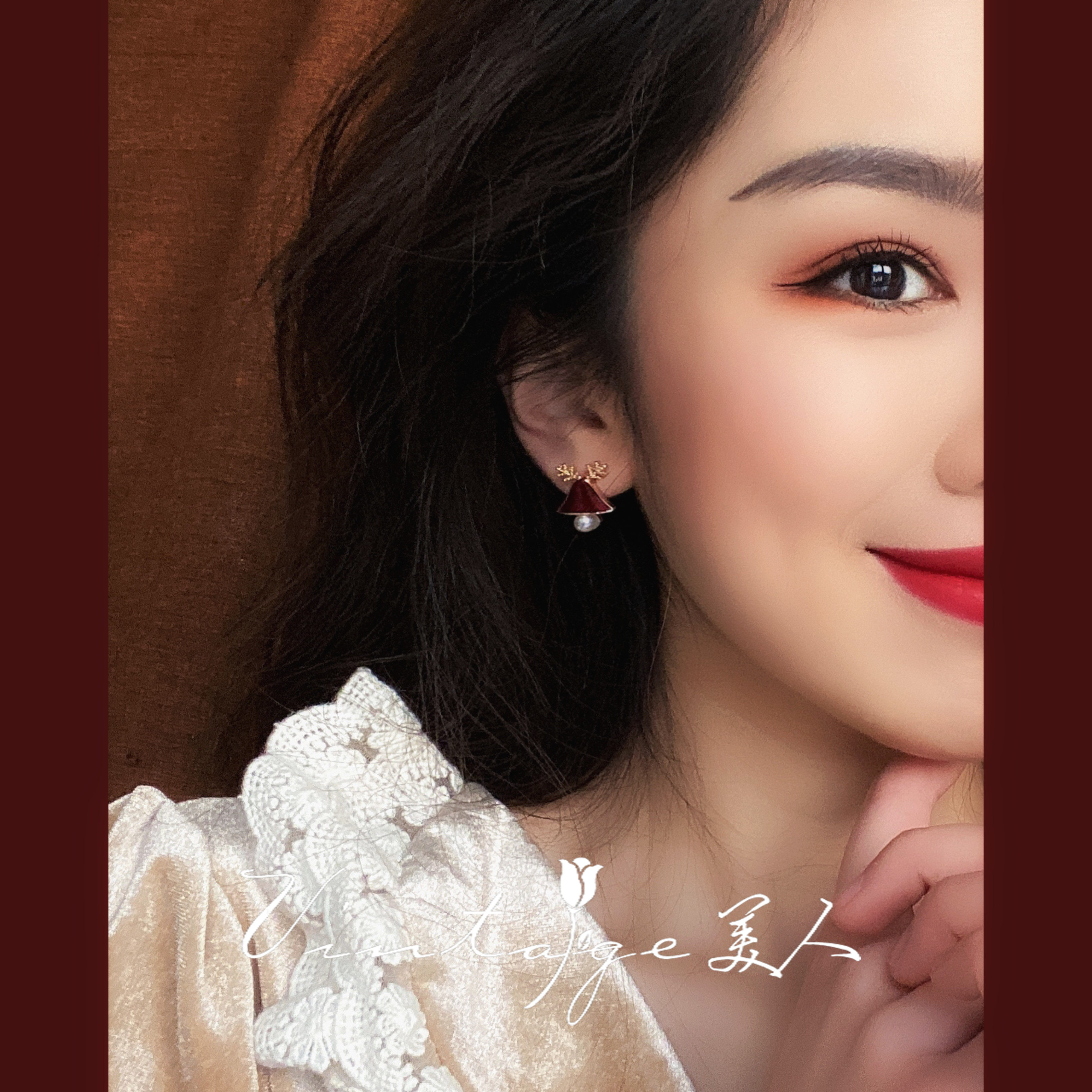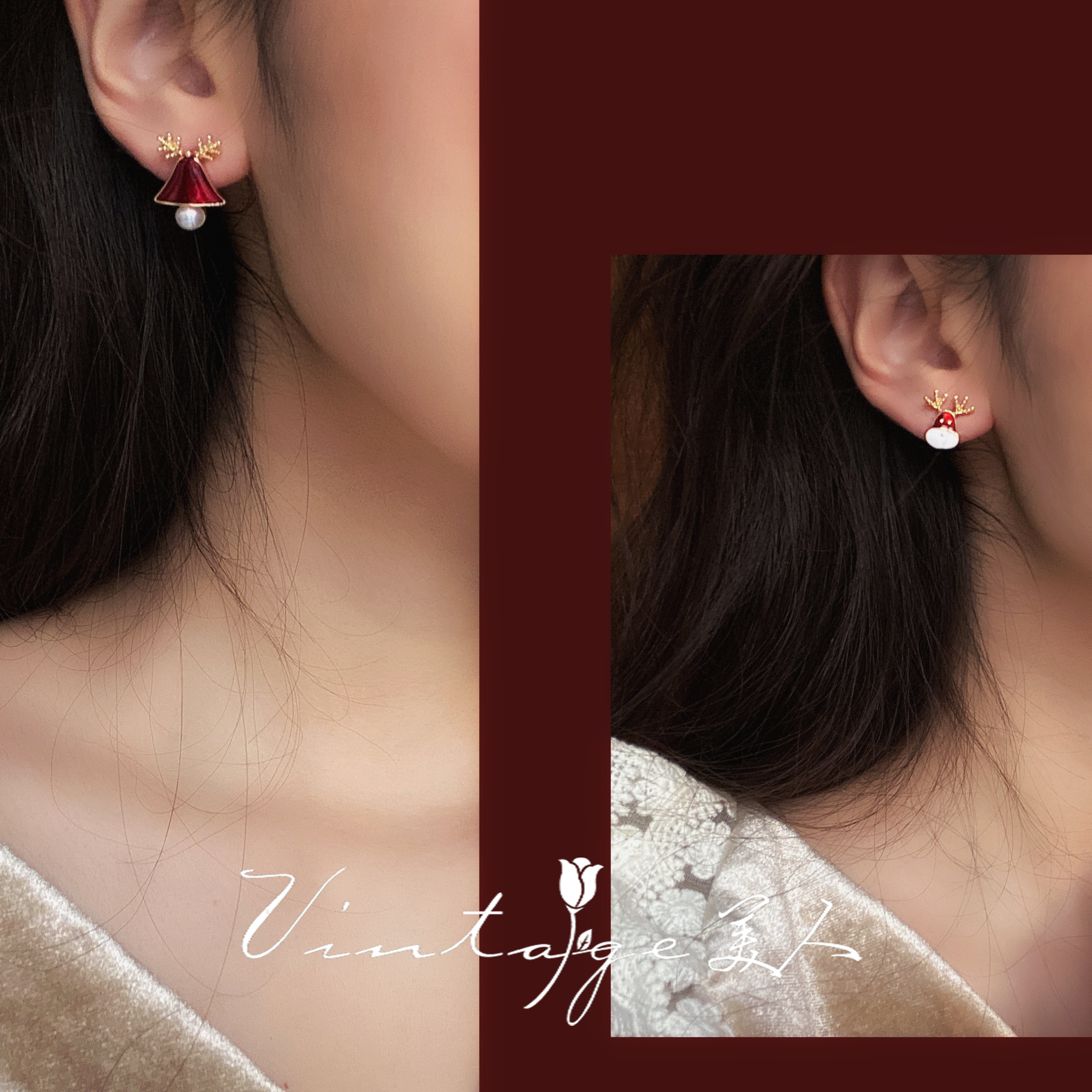 Christmas red (silver needle) Christmas red (cushion ear clip)