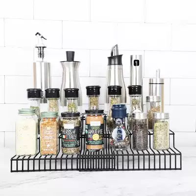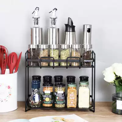 Lawrence kitchen wrought iron seasoning tank rack bathroom multifunctional double-layer rack home decoration bathroom shelf Black