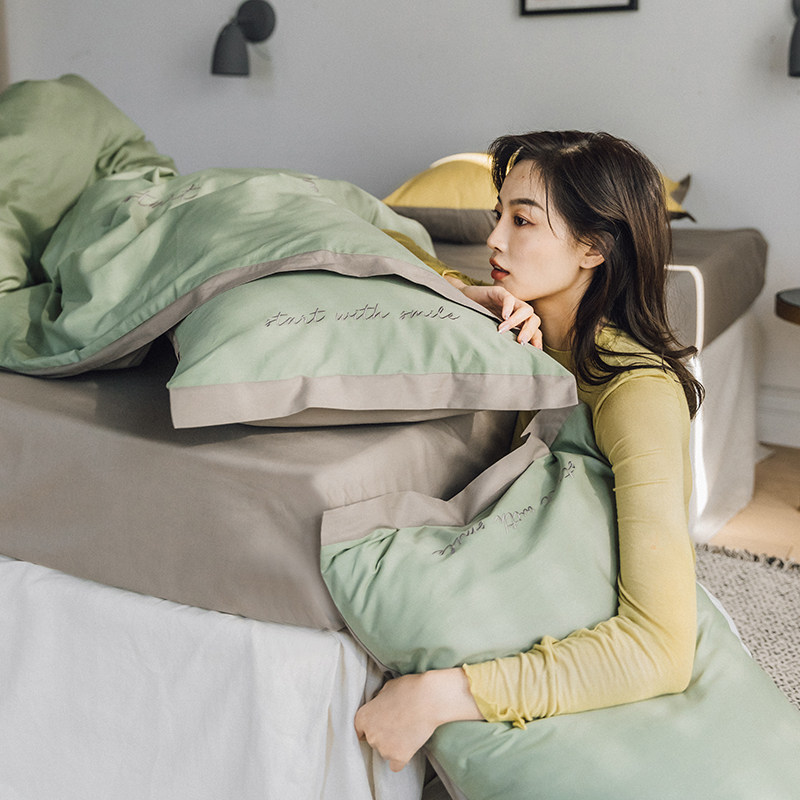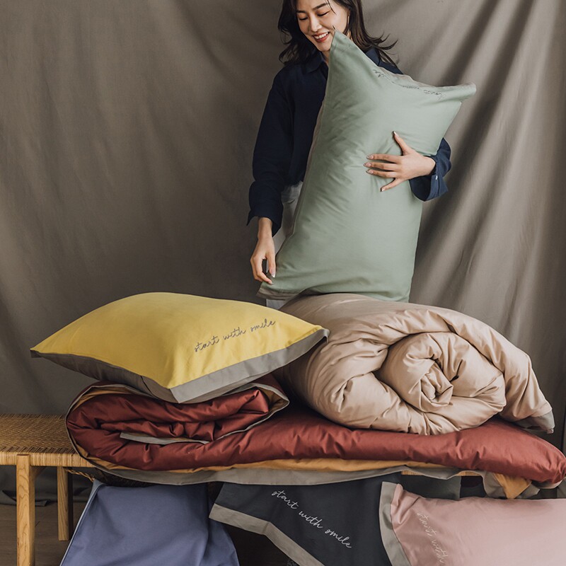 Nordic simple cotton pillow sleeper without core envelope pillow bag Wide side embroidery 48x74cm single pillow case 2 packed
