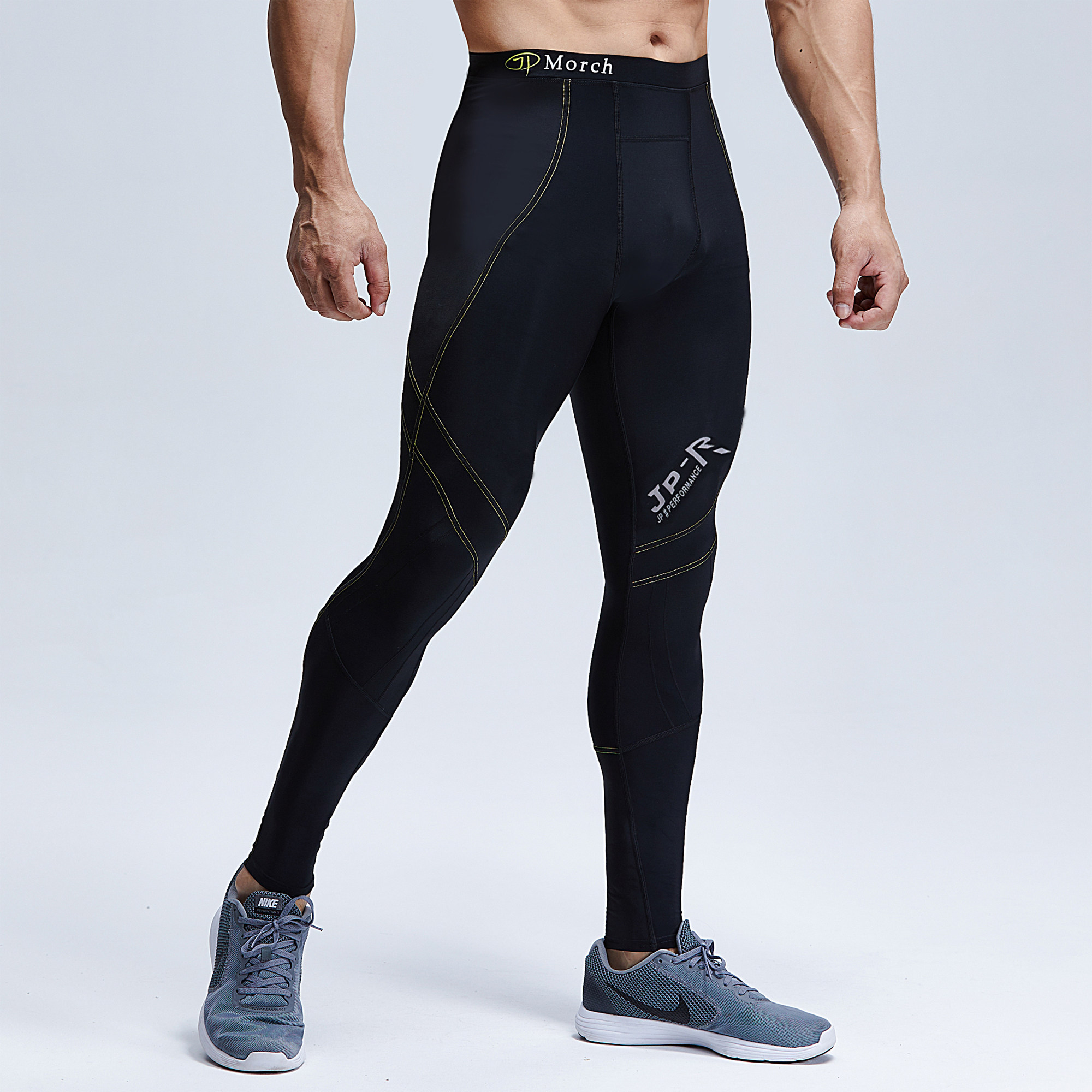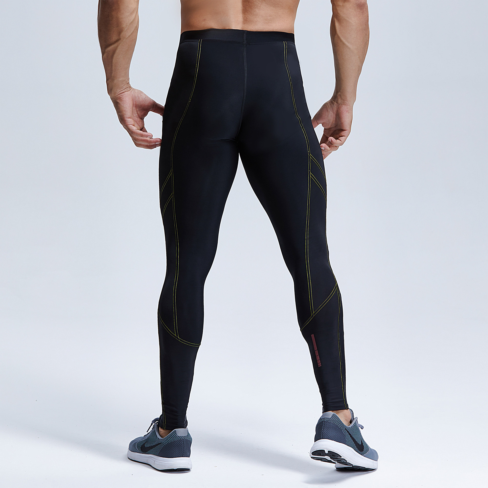 Gradient compression pants men's fitness tights elastic quick-drying sports training bottoming plus velvet marathon running trousers