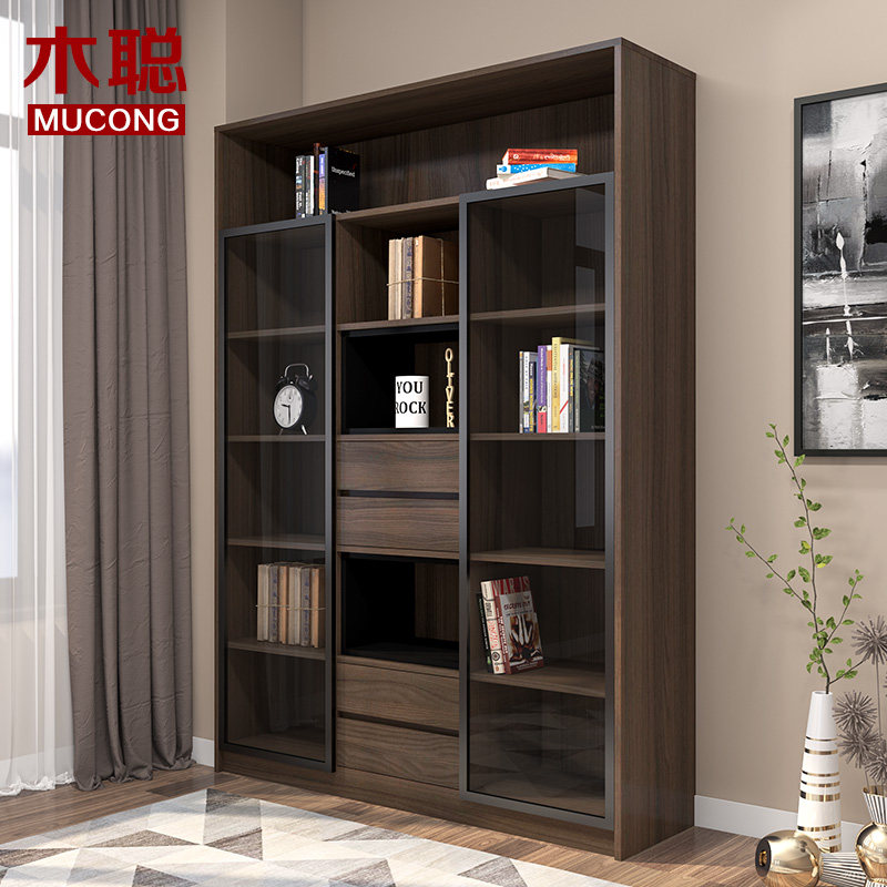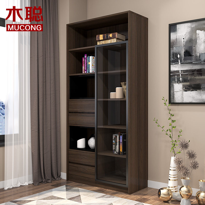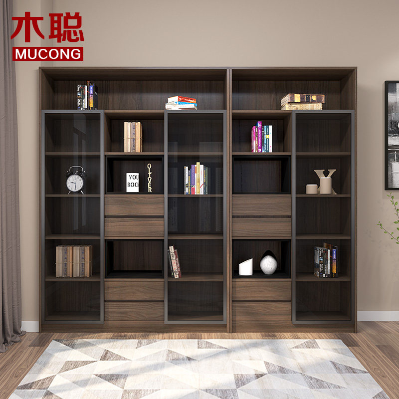 Mu Cong modern simple bookcase Glass door combination bookcase storage cabinet Free combination bookcase storage cabinet can be customized