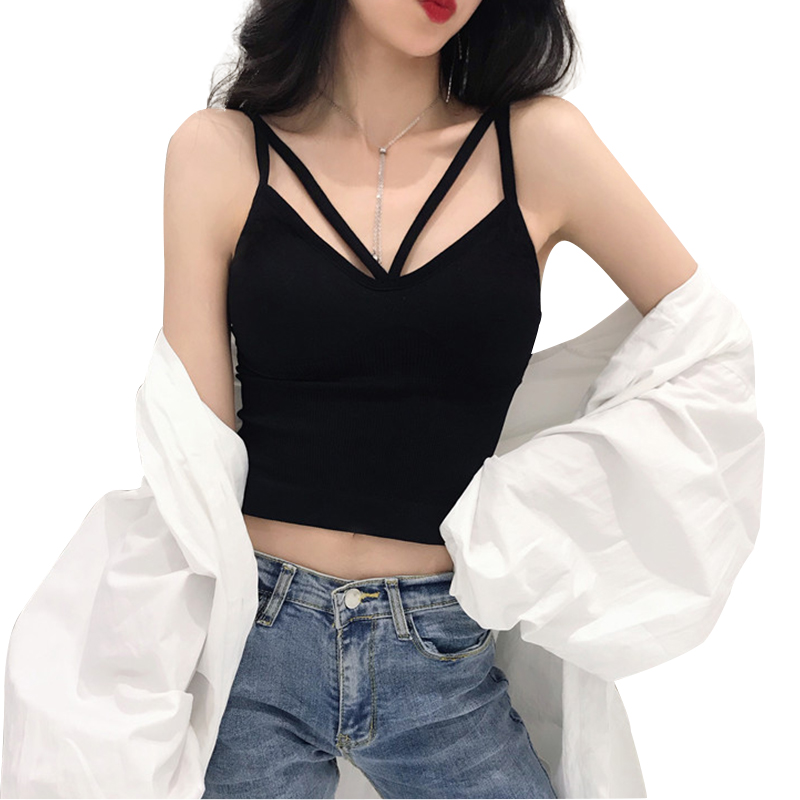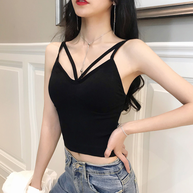 Black strapless bottoming with chest pad suspender top with cross V-neck collarbone beauty back sexy vest for women