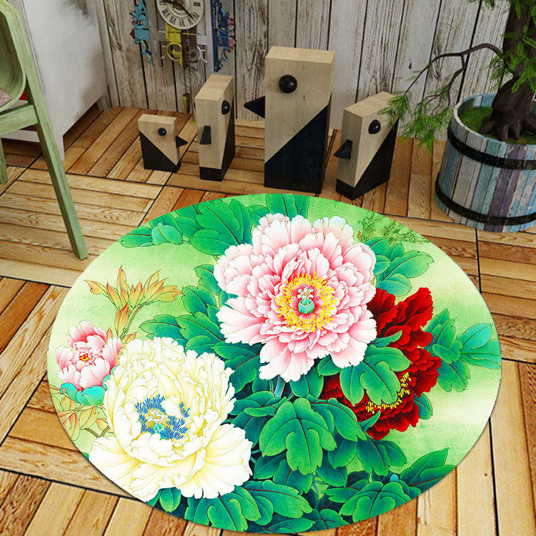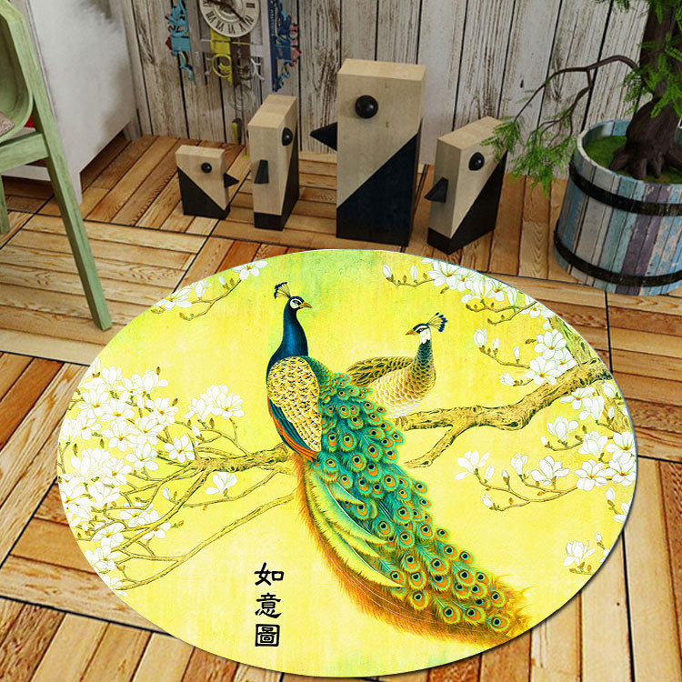 Round China Wind Printed Carpet Living Room Computer Desk Anti Slip Corner Blanket Can Be Round Cushion