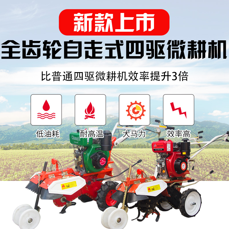 Gasoline and diesel high-horsepower paddy field and dryland dual-use four-wheel drive full gear trenching and cultivating rotary tillage and backfill machine