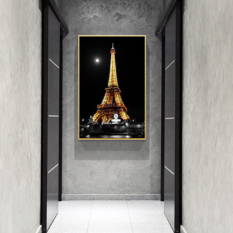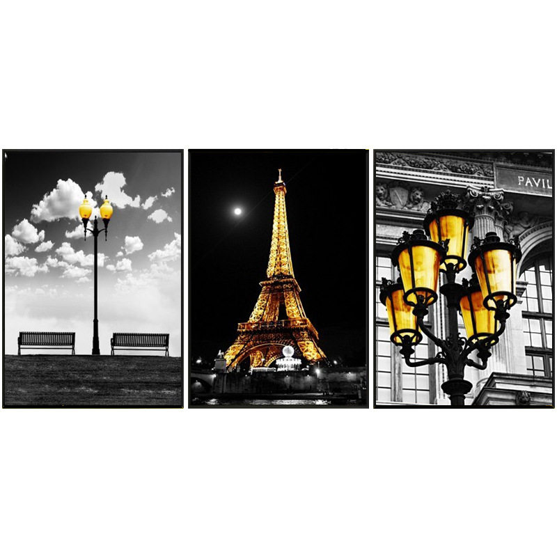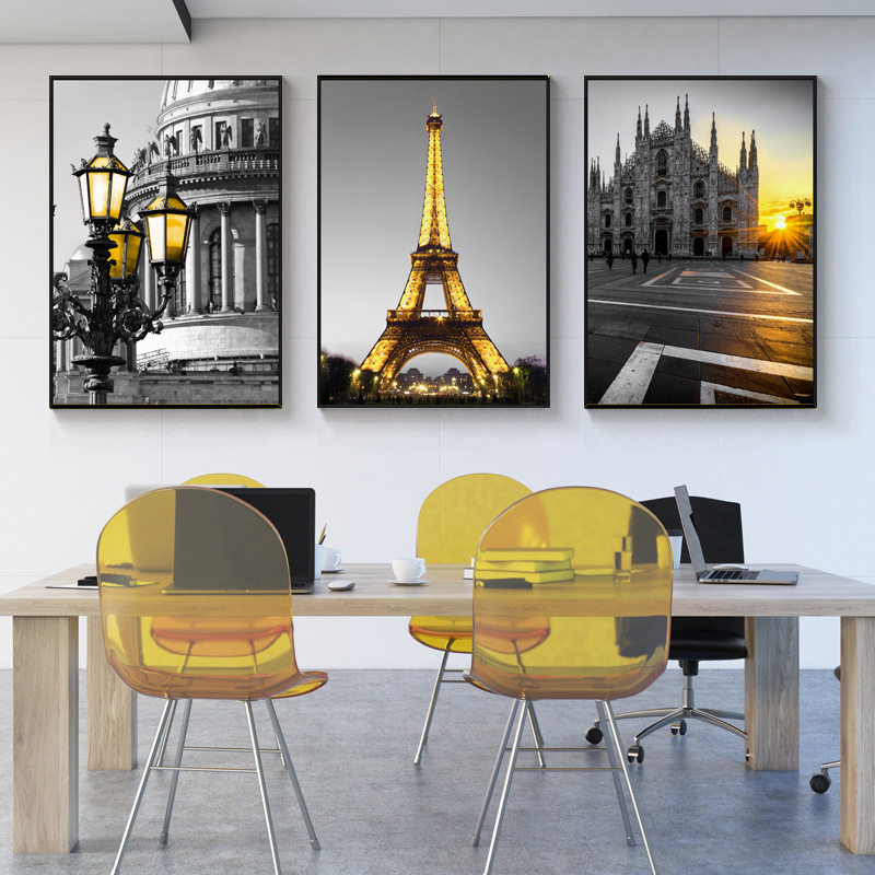 Paris Tower City Wall Painting Livingroom Decoration Painting Nordic Hanging Paintings Black & White Architectural Metropolis Golden Landscape Fresco