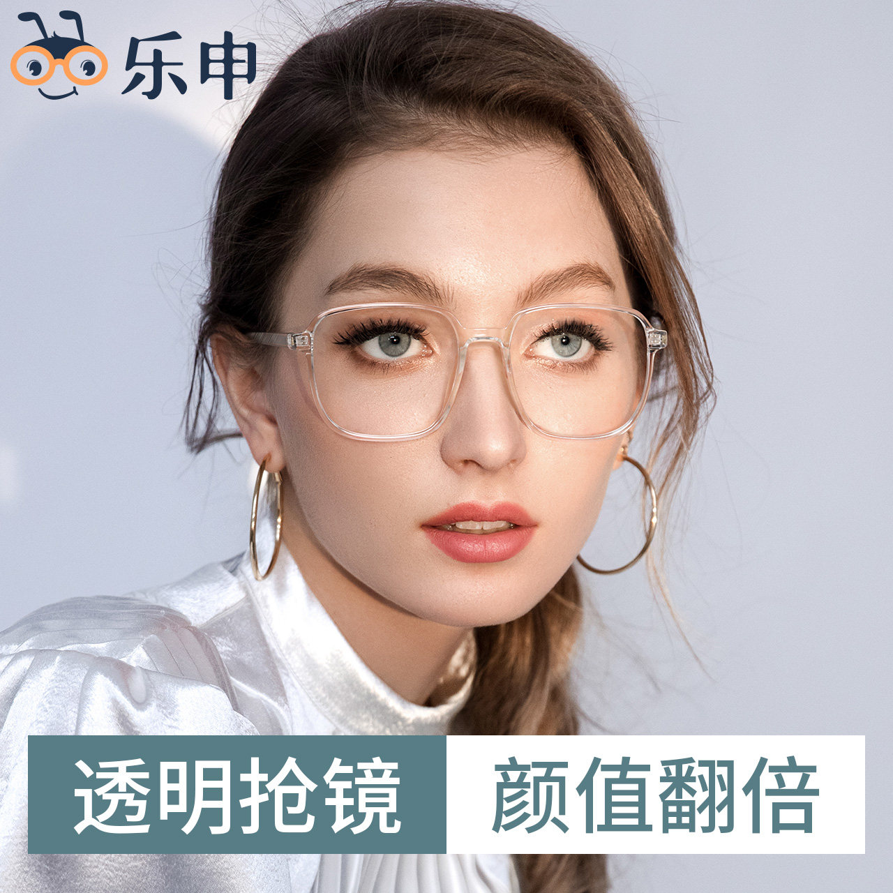Transparent white myopic glasses frame women's ins wind ultra light large face square frame with eyes male tide can be equipped with degrees