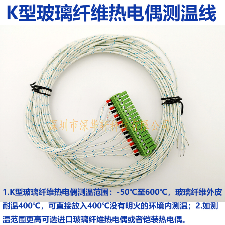 Glass fiber sheathed thermocouple temperature measurement line high temperature thermocouple is suitable for multi-channel thermometer temperature test