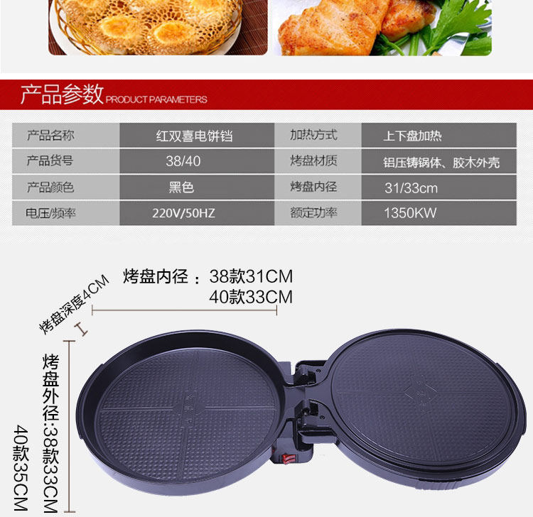 Morning Sun Red Double Delight Home Electric Frying Machine Bifacial Heating Automatic Power Cuts Intensify Deepening Branded Pancake Pan Multifunction