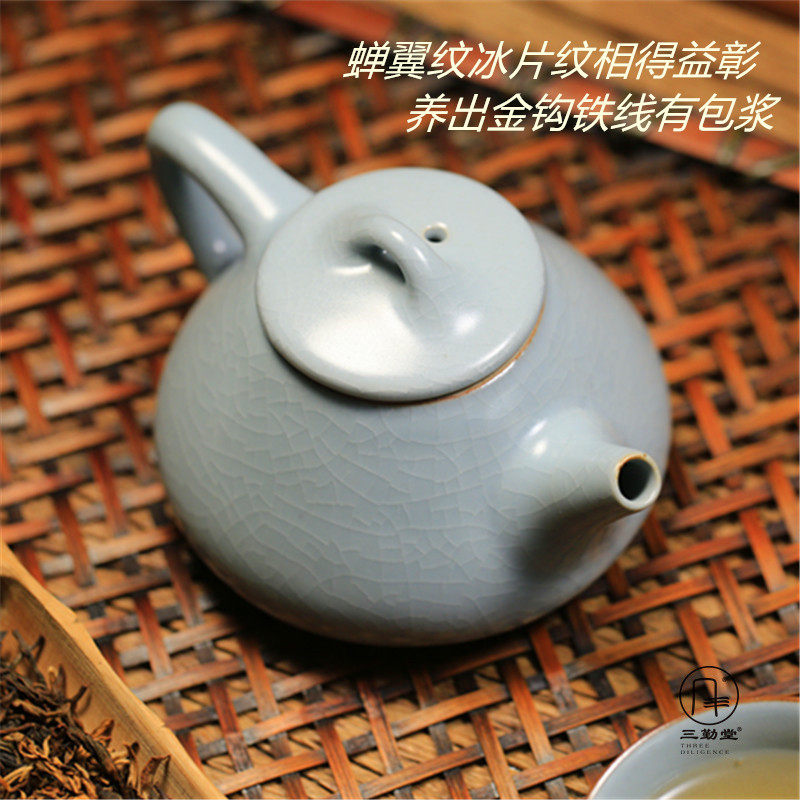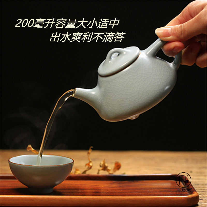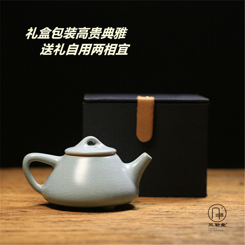 Sanqitang Ru kiln Stone scoop teapot open film can raise household single pot Jingdezhen ceramic tea making teapot S24008