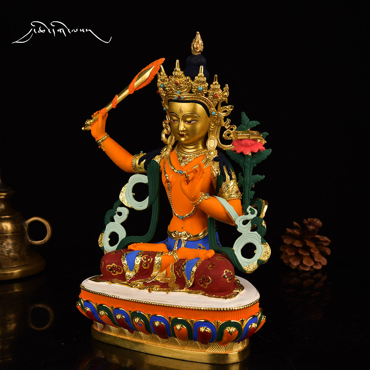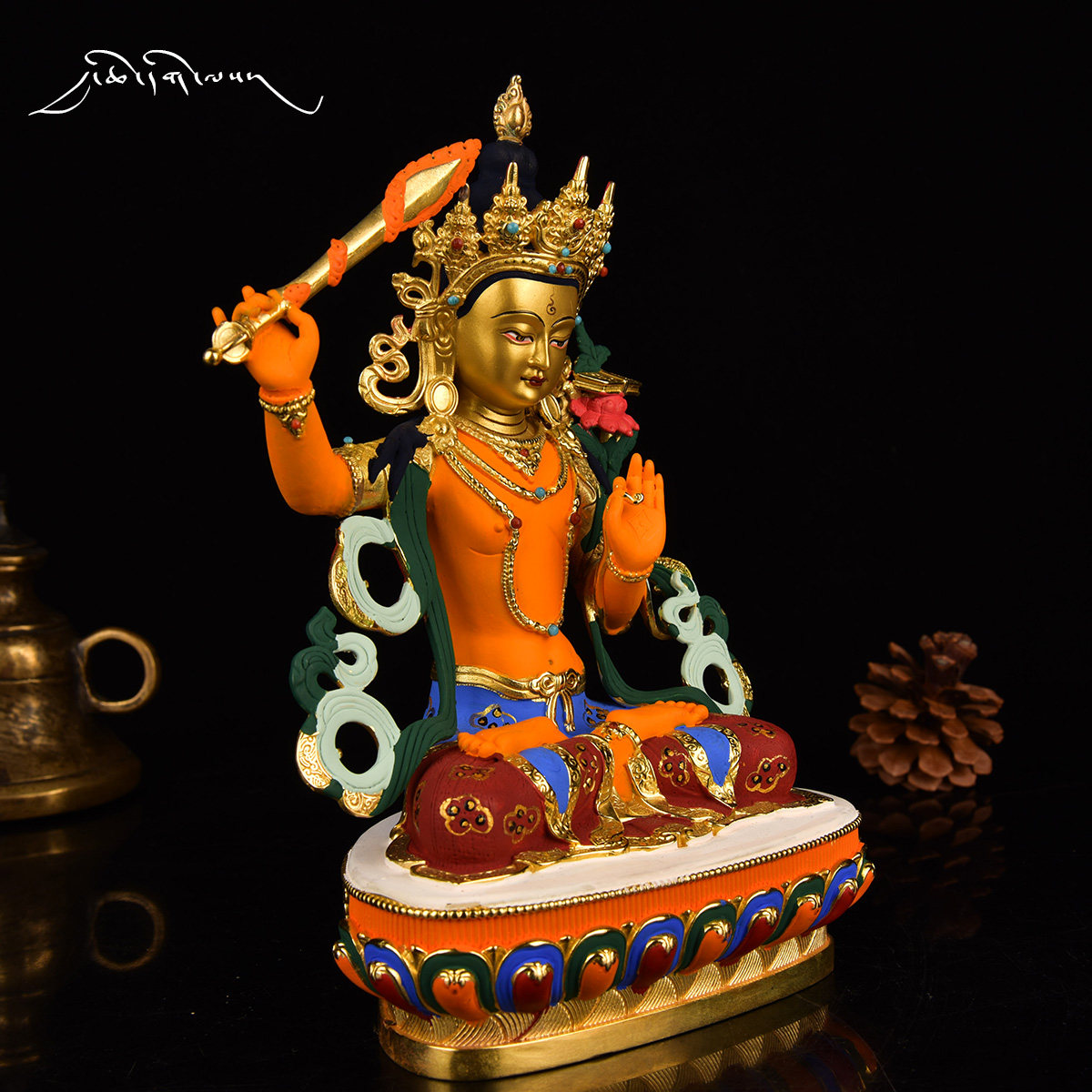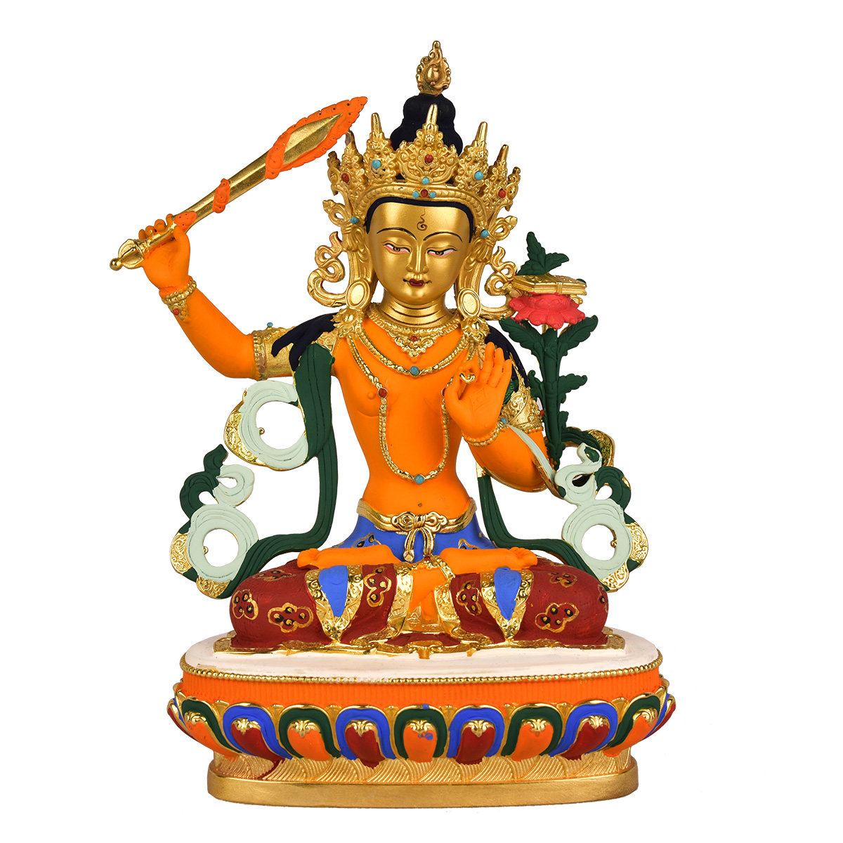 Daqian Good Fate Tibet 7-inch Manjushri Buddha statue gilt painted carved pure copper Tibetan Tantric Buddha statue ornament