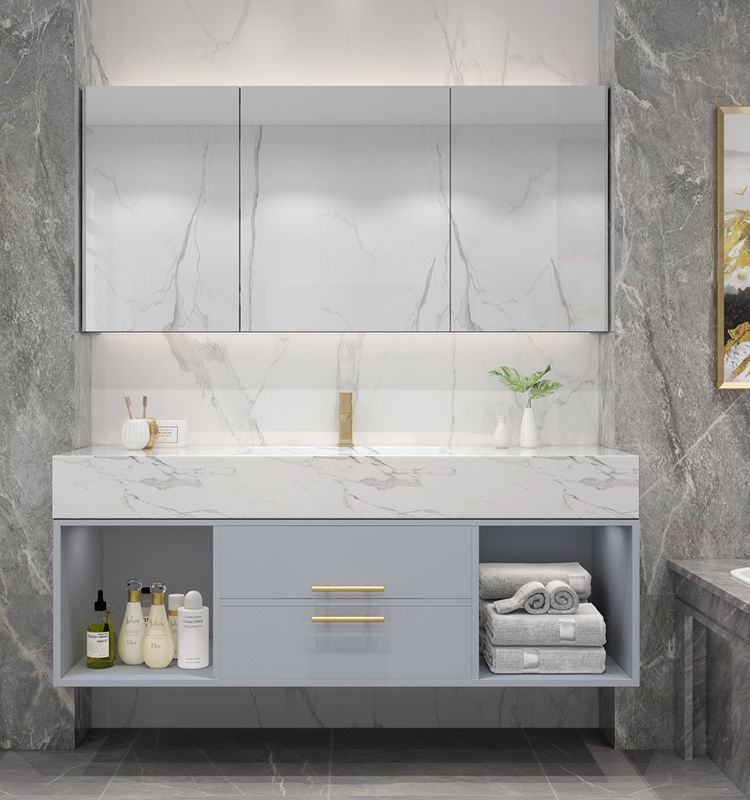 Nordic bathroom cabinet combination modern simple light luxury dressing room marble face wash basin wash table set