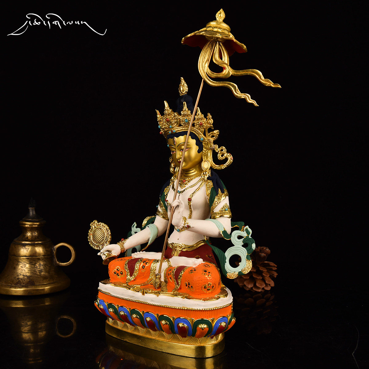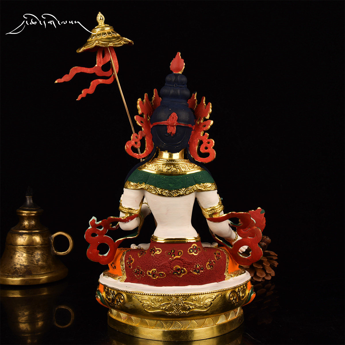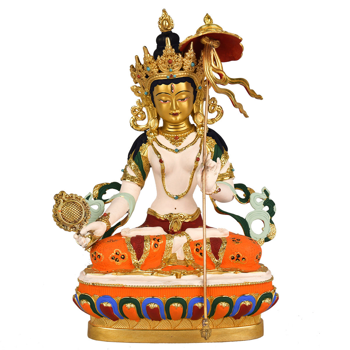 Daqian Good Fate Tibet 7-inch big white umbrella cover Buddha mother pure copper Buddha statue gilt painted Tibetan Tantric Buddha statue ornament