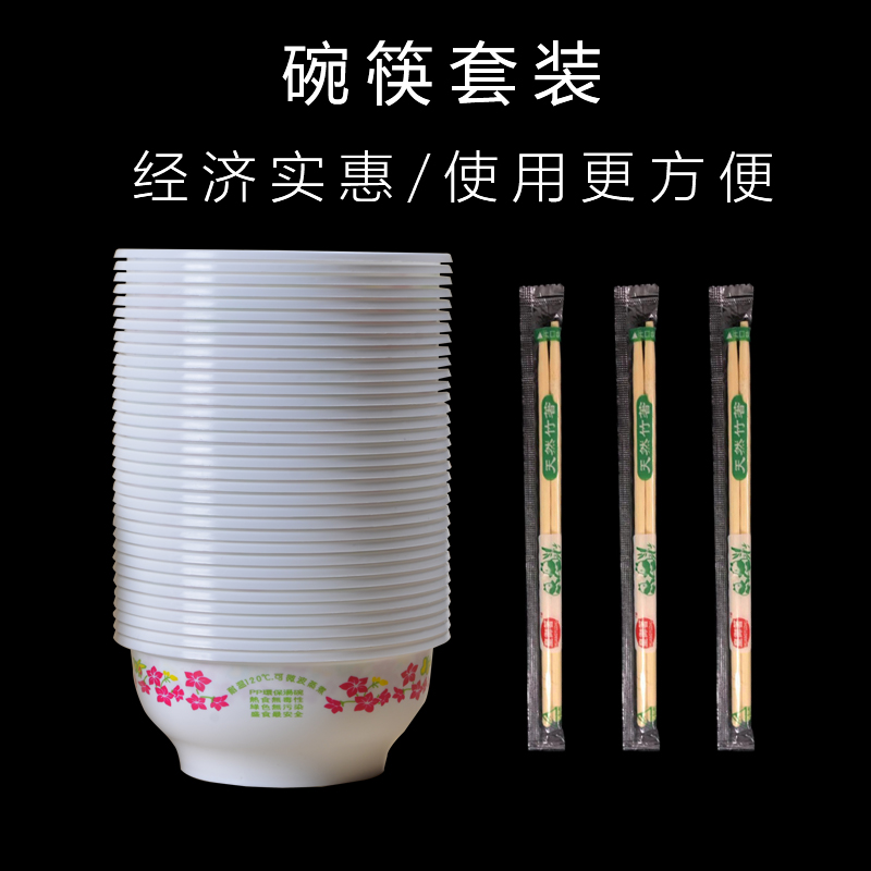 Disposable bowls and chopsticks set household thickened wedding banquet hot pot tableware lunch box plastic round with cover wholesale