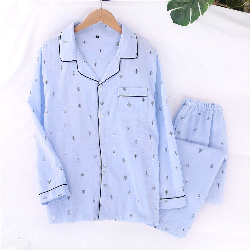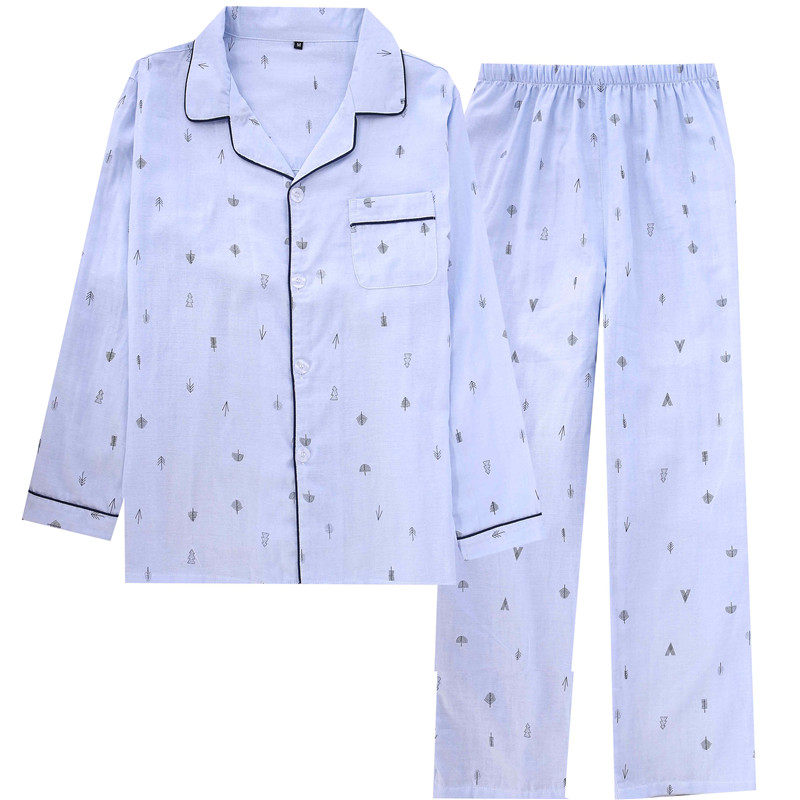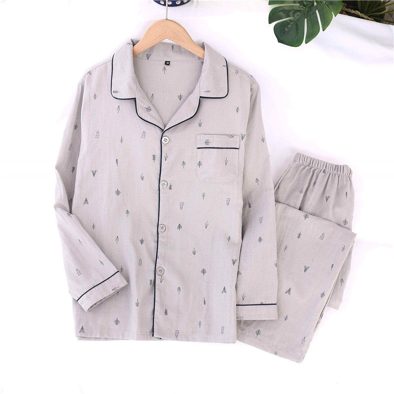 Spring Autumn Season Pure Cotton Cotton Cloth Pajamas Men Long Sleeve Summer Style Double Cotton Yarn Day Department Full Cotton Home Residence Suit Big Size