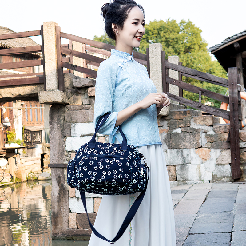 Uzhen ethnic wind blue printed cloth bag female inclined cross-pack middle-aged mother hand-carrying large-capacity woman single shoulder backpack-Taobao