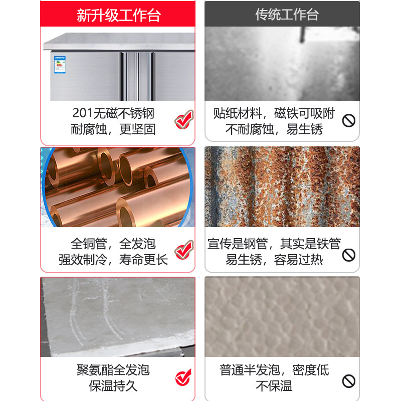 Refrigerated workbench freezer commercial refrigerator freezer freezer operation table kitchen fresh-keeping flat cold stainless steel water bar