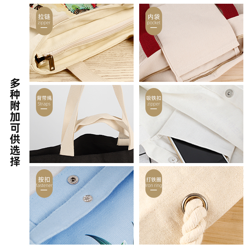 Canvas bag custom printed logo pattern environmental bag shoulder tote bag cotton bag female custom shopping bag custom
