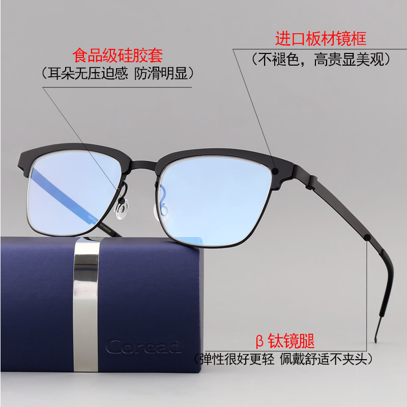 Cool read Danish leniency glasses No welding point No screw eye frames Male myopia ultra-light second half frame titanium boom