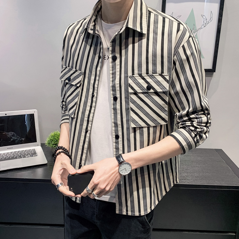 Shirt men 2021 spring new loose long-sleeved jacket Korean version of the trend casual ruffian handsome spring and autumn striped shirt
