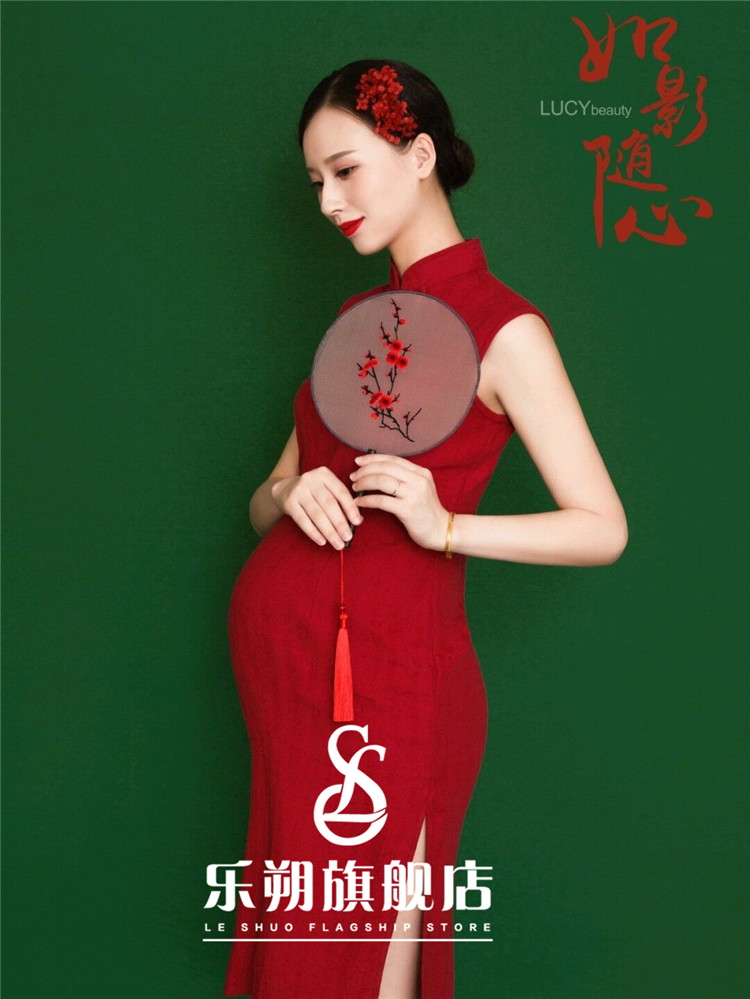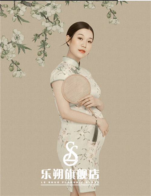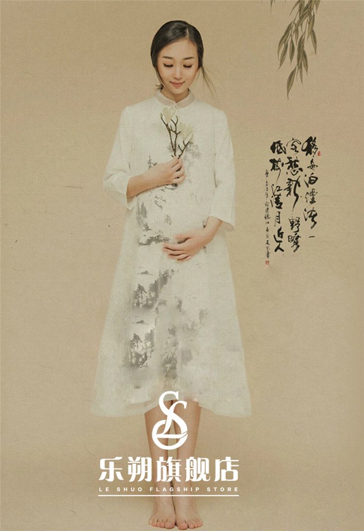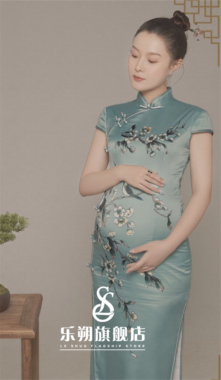 Pregnant woman photo costume Chinese feng shui ink stroke painting cheongsam new retro style pregnant woman photo costume